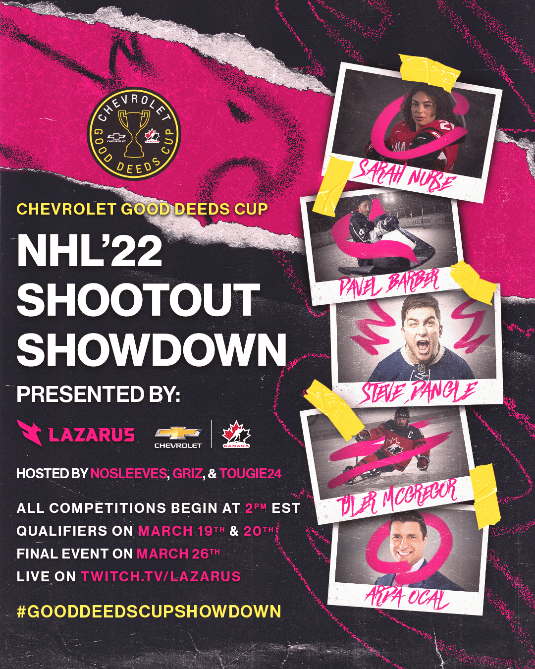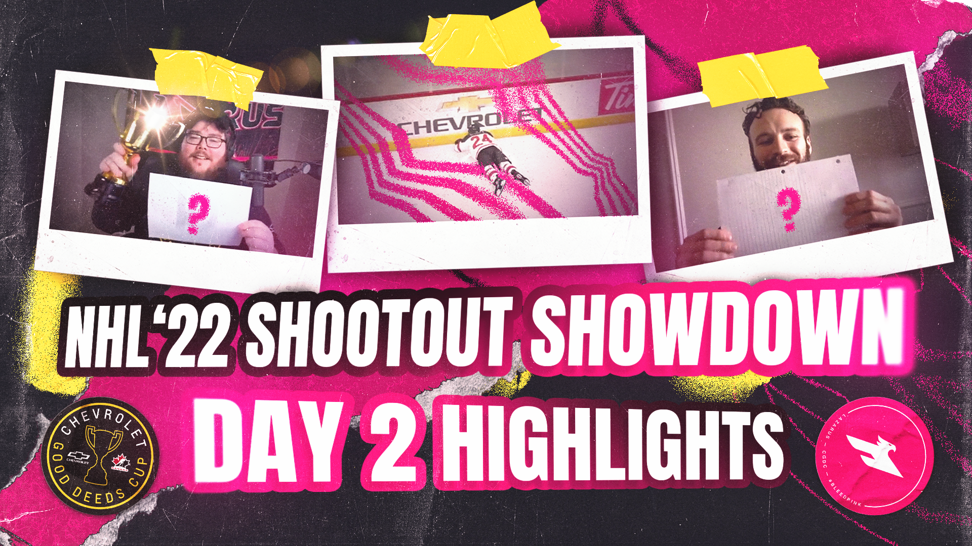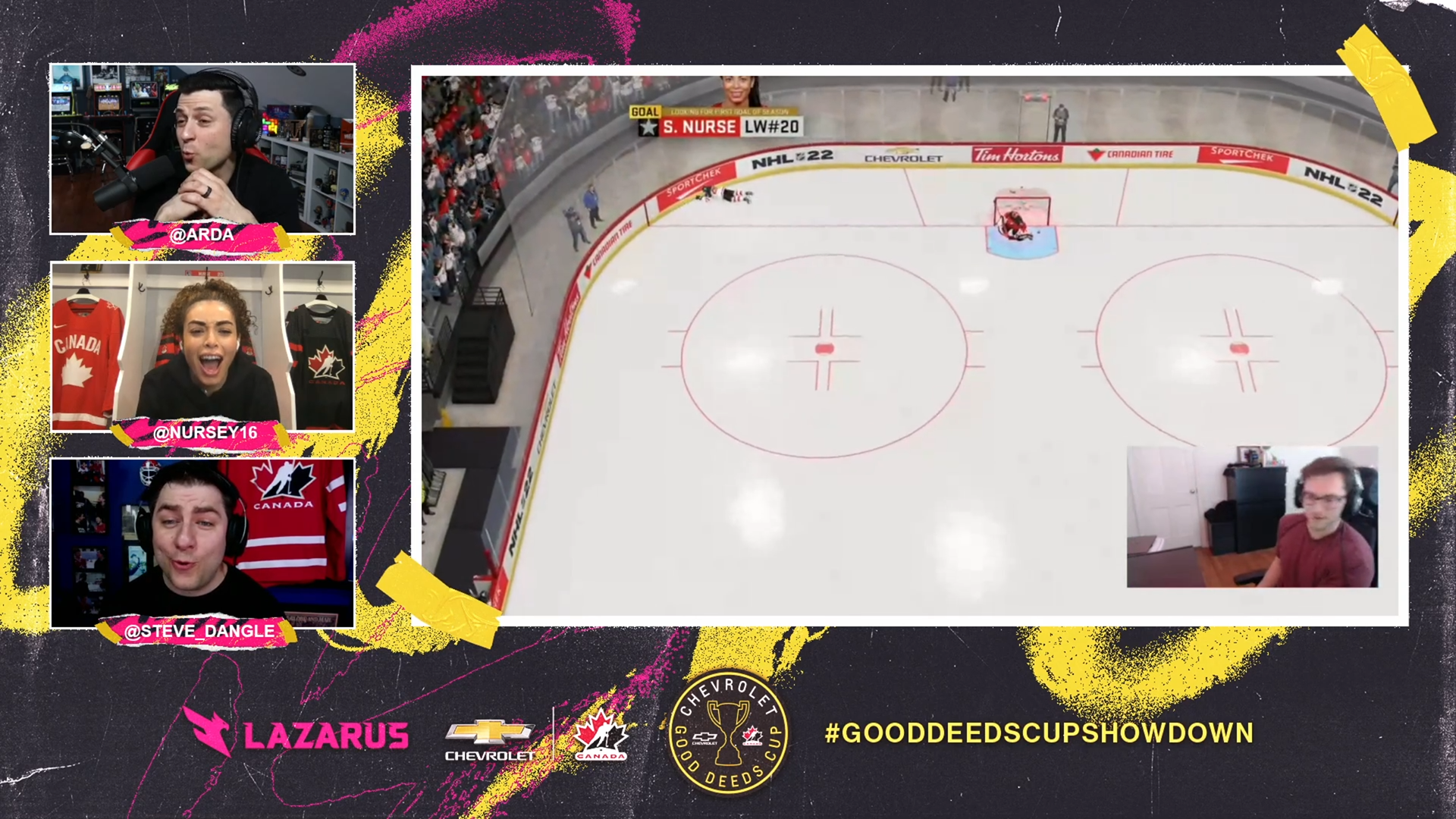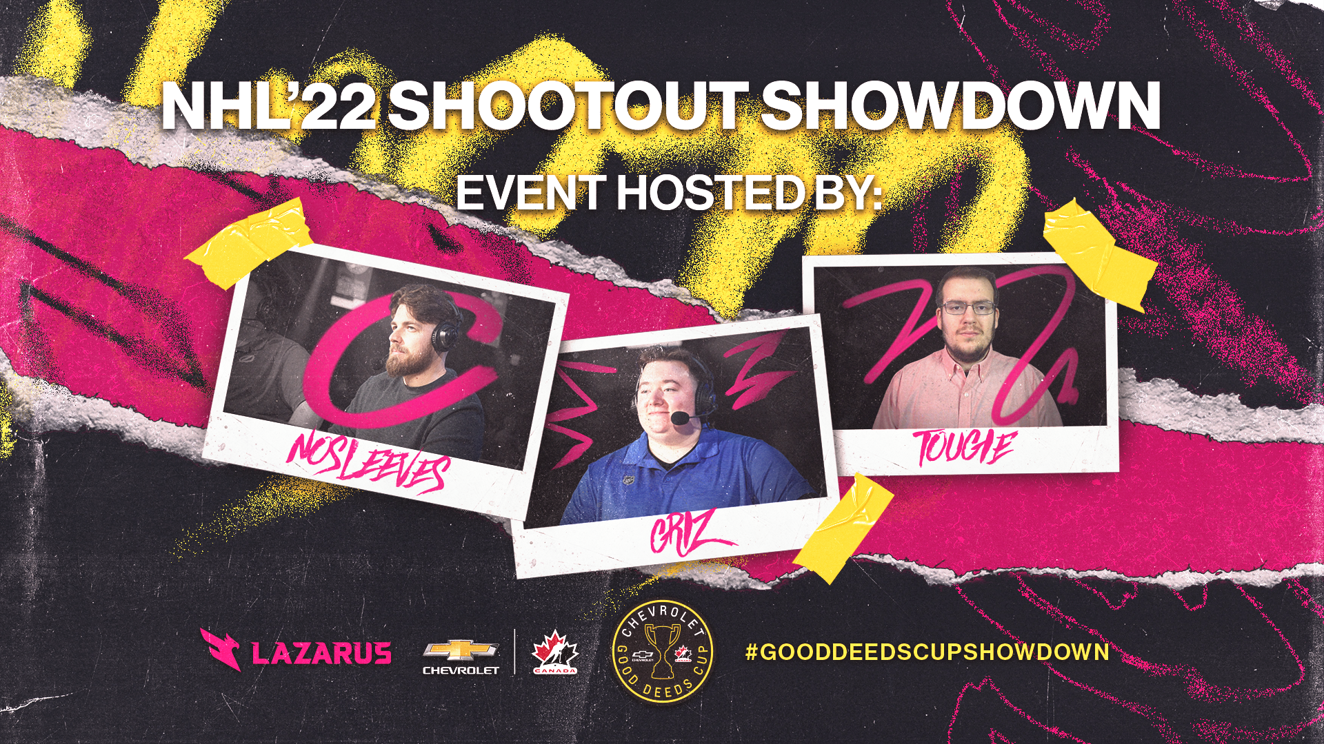 The NHL Shootout Showdown is a livestream broadcast event in collaboration with Chevrolet and their Good Deeds Cup, hosted by Lazarus Esports. This project encompasses the brand direction for the event, marrying the Chevrolet and Lazarus brands inspired by traditional sports design; as well as social media and livestream broadcast assets designed for the event.