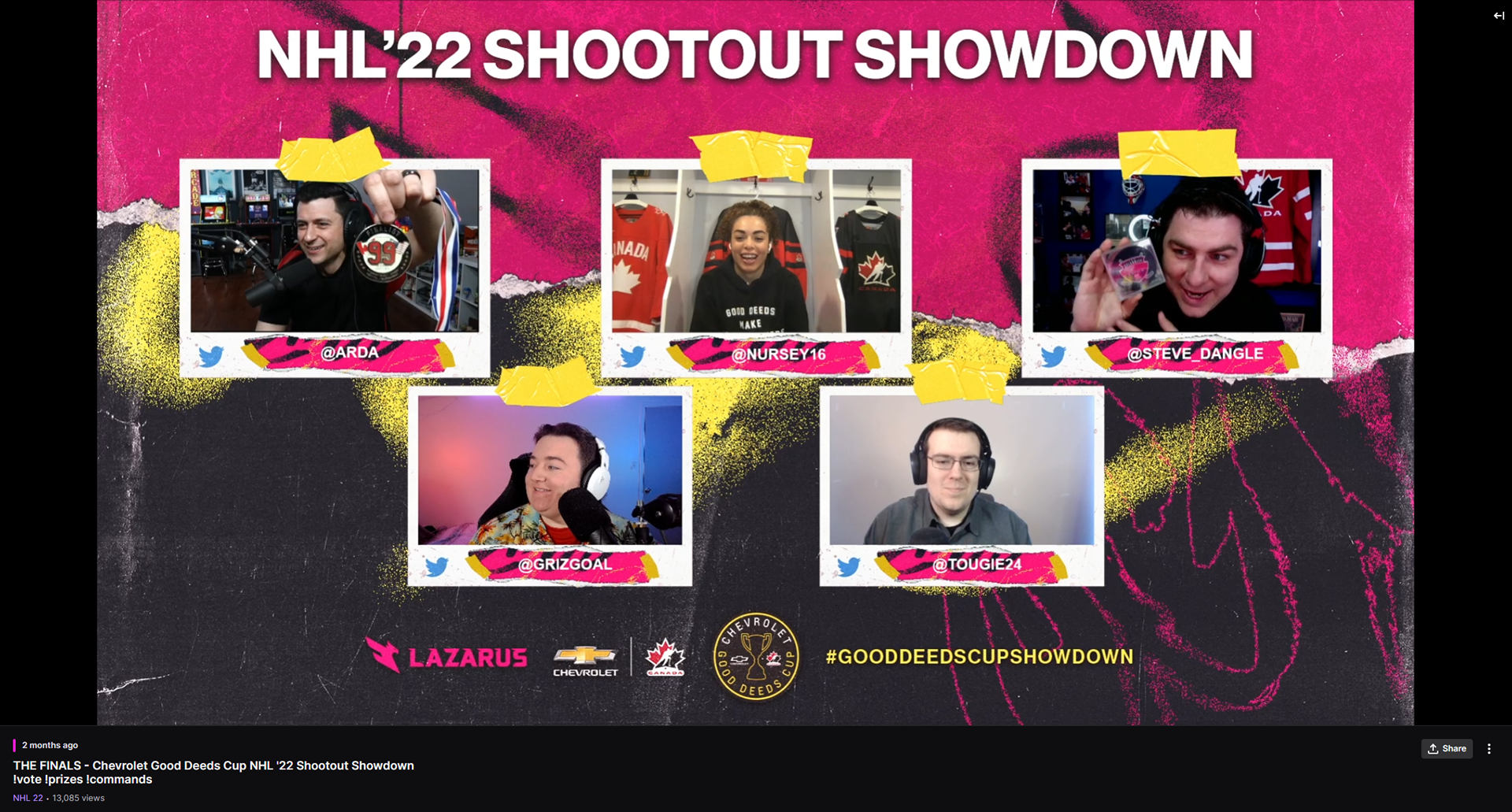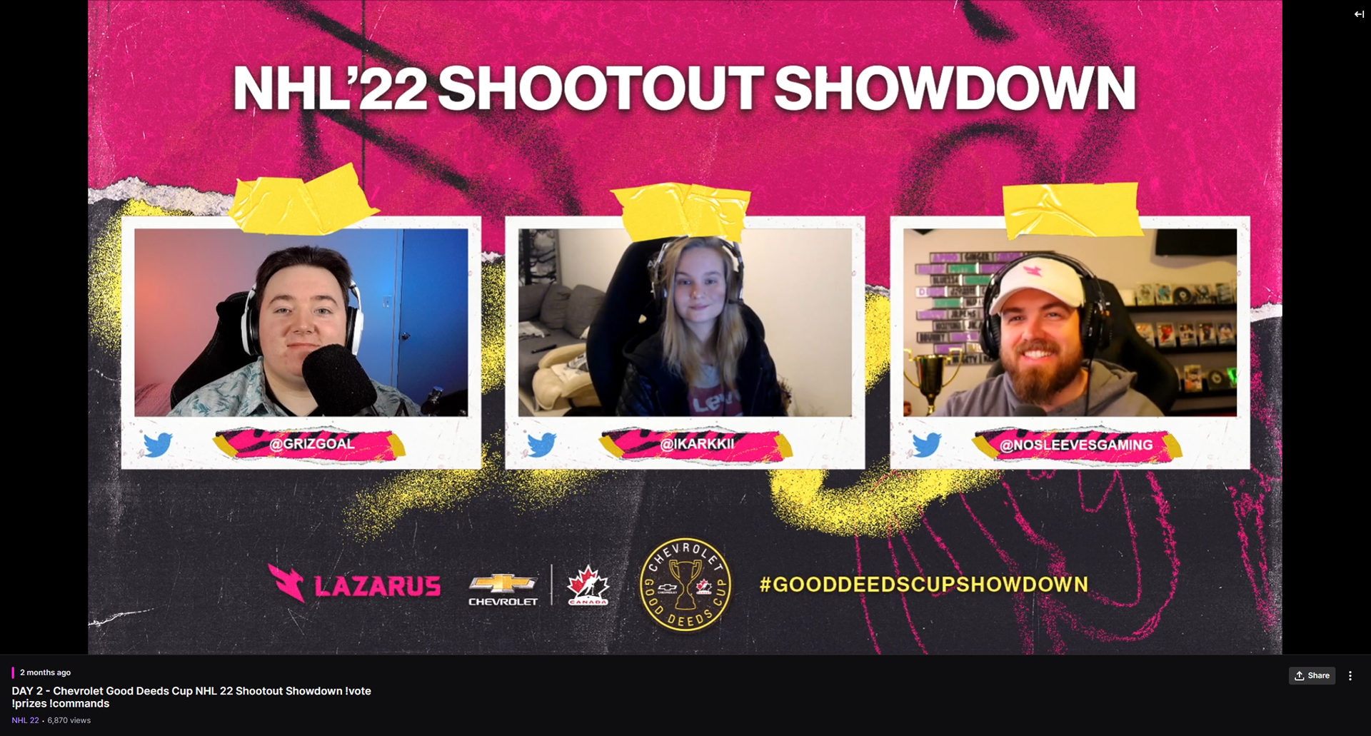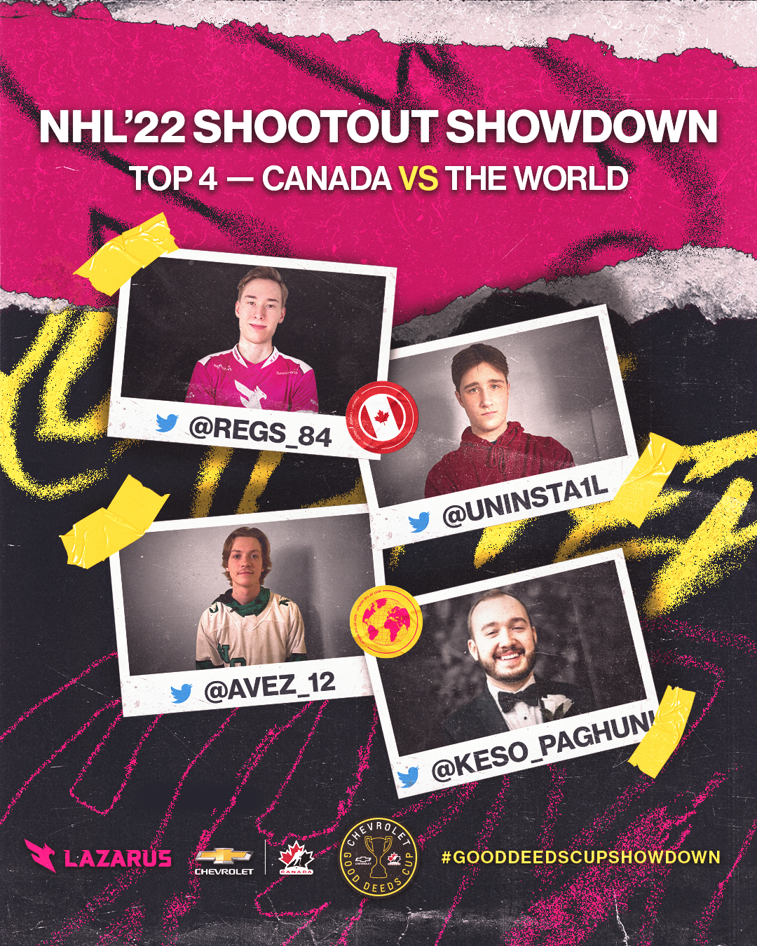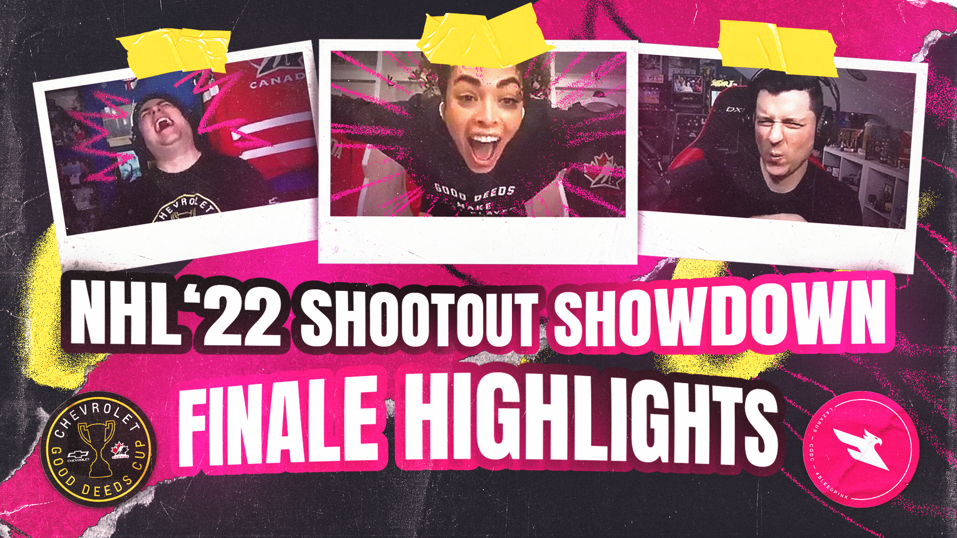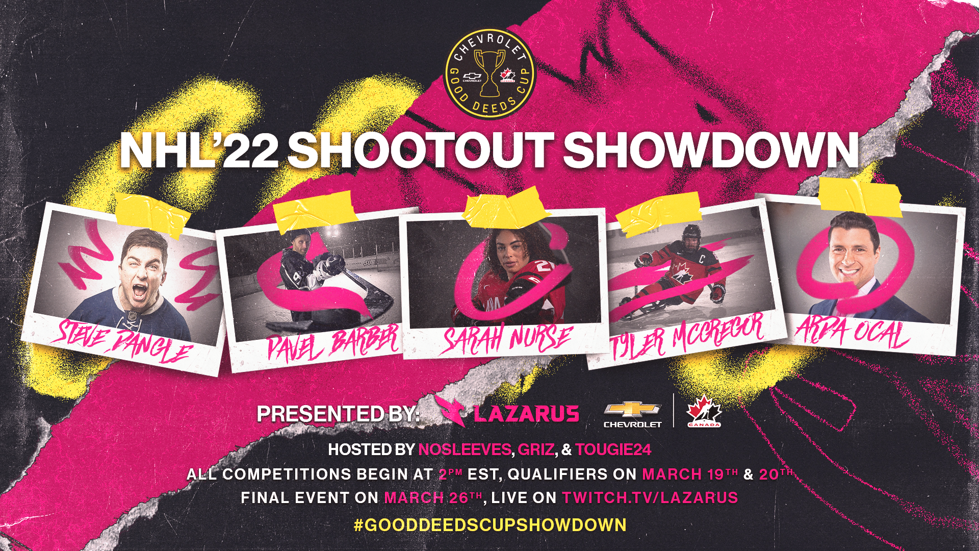 The NHL Shootout Showdown is a livestream broadcast event in collaboration with Chevrolet and their Good Deeds Cup, hosted by Lazarus Esports. This project encompasses the brand direction for the event, marrying the Chevrolet and Lazarus brands inspired by traditional sports design; as well as social media and livestream broadcast assets designed for the event.