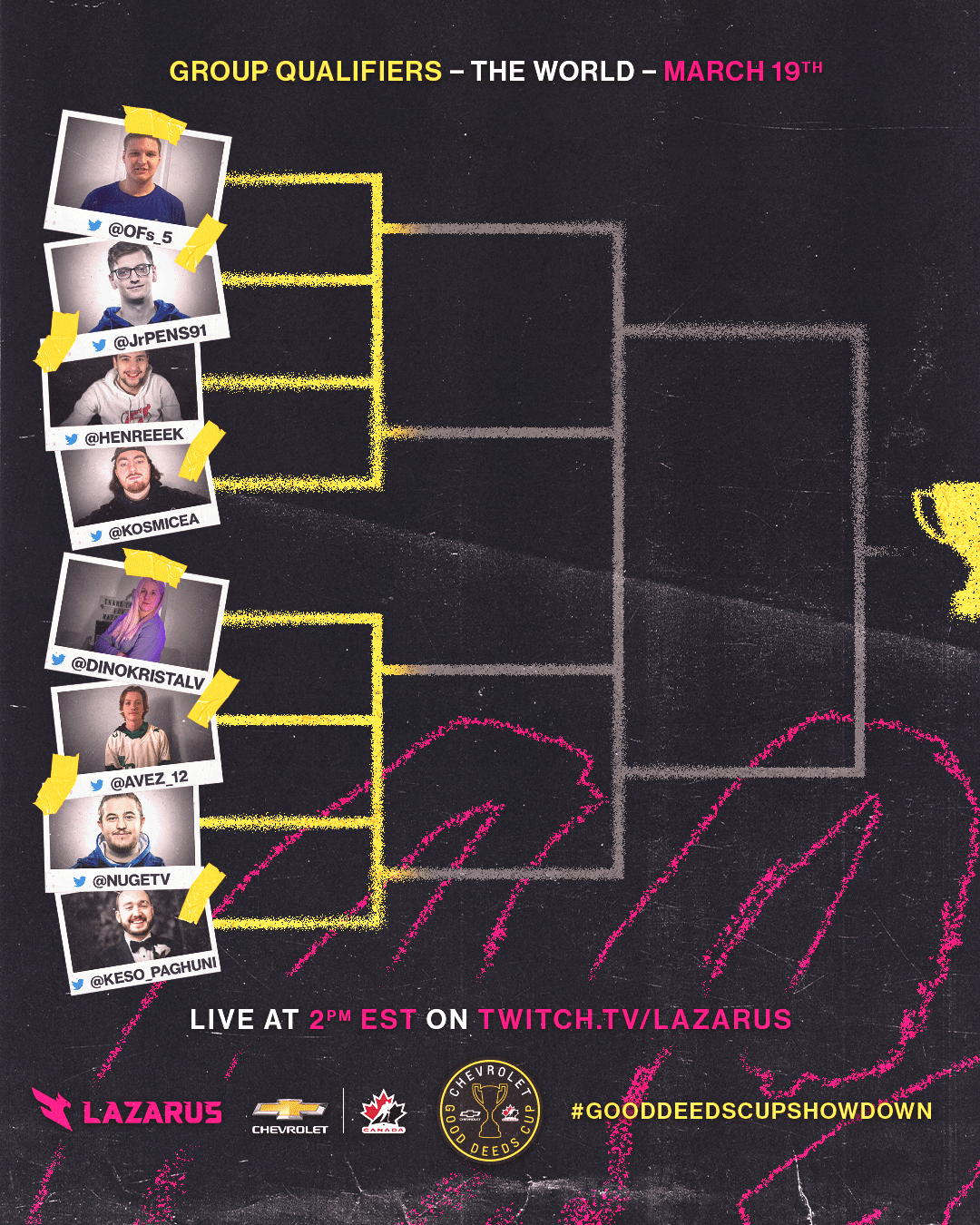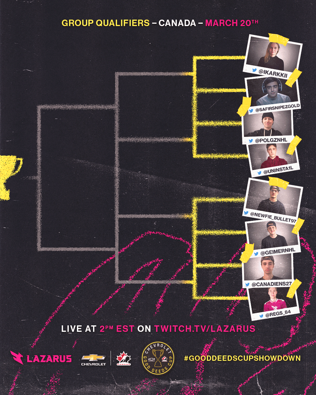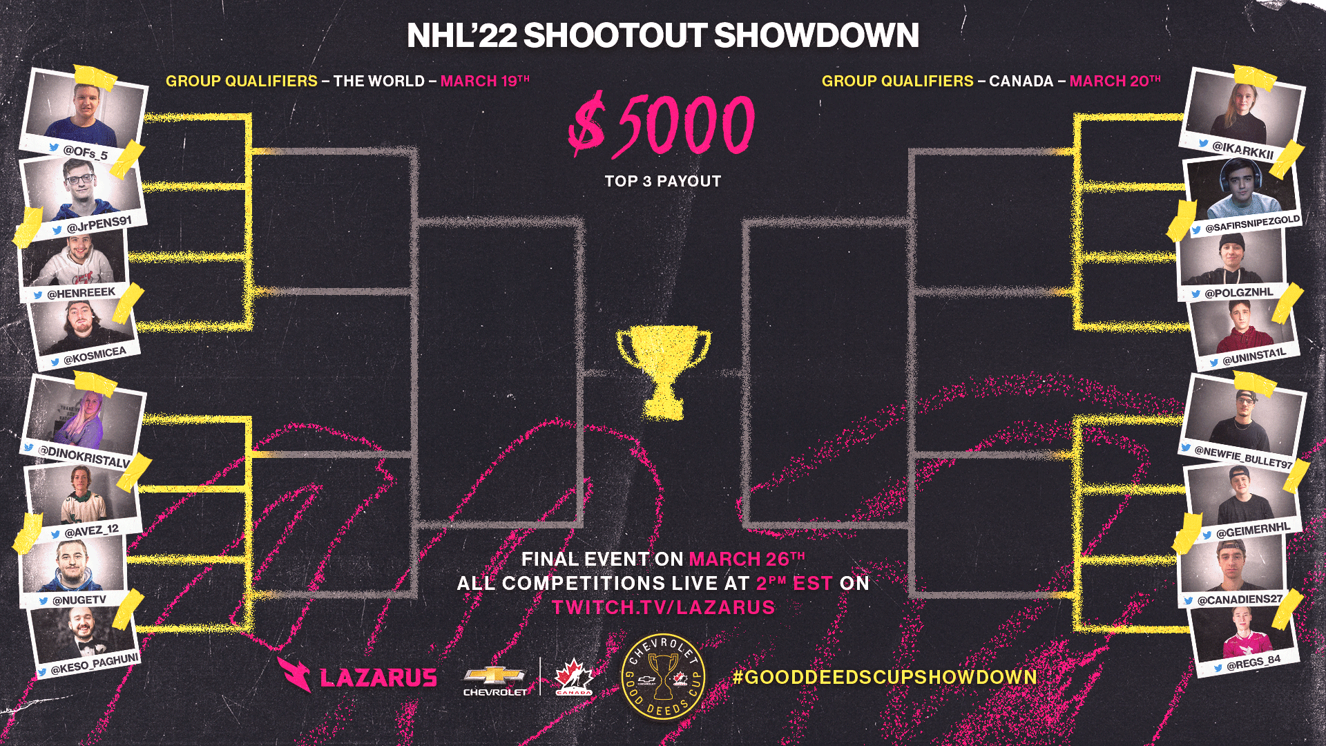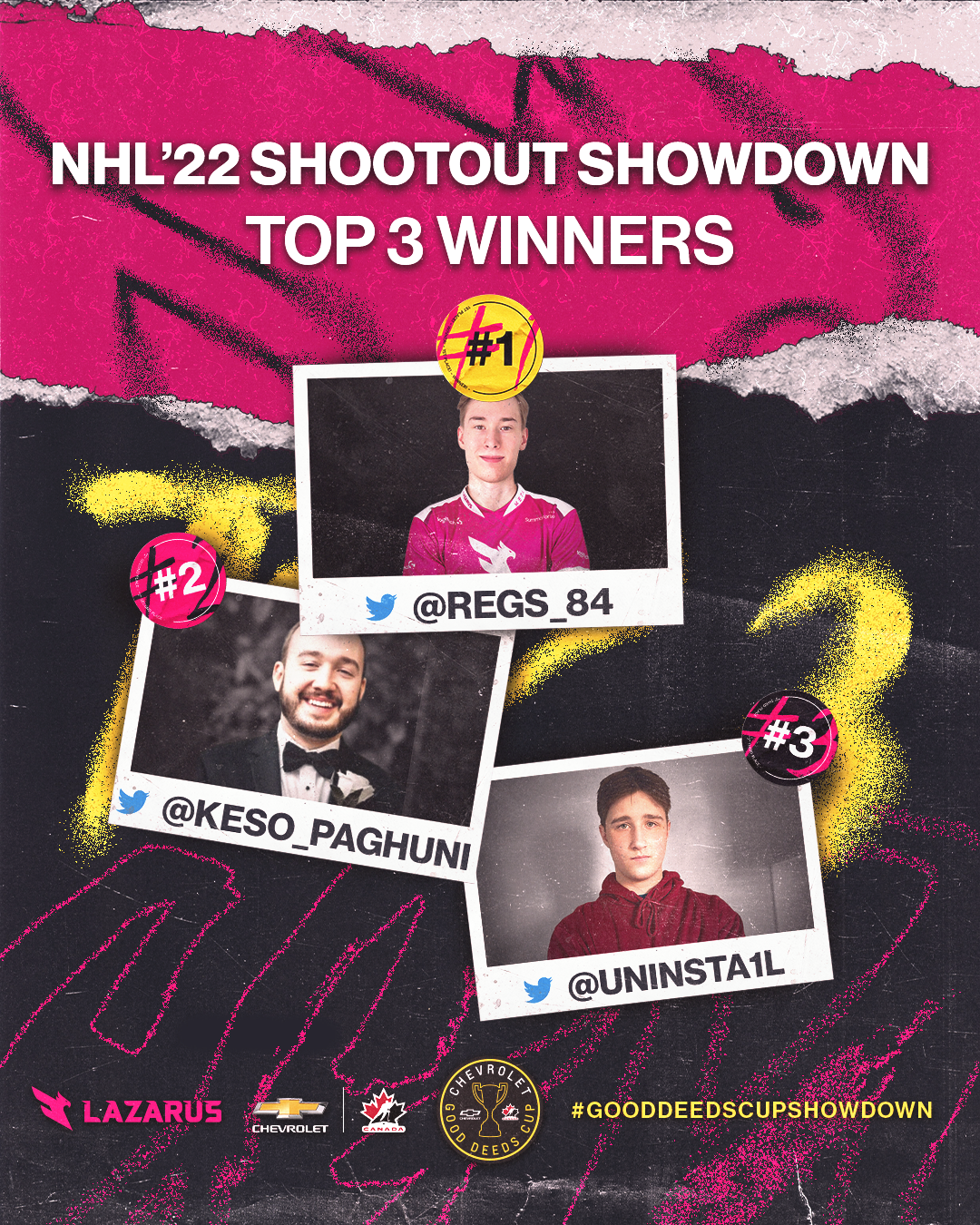 The NHL Shootout Showdown is a livestream broadcast event in collaboration with Chevrolet and their Good Deeds Cup, hosted by Lazarus Esports. This project encompasses the brand direction for the event, marrying the Chevrolet and Lazarus brands inspired by traditional sports design; as well as social media and livestream broadcast assets designed for the event.
