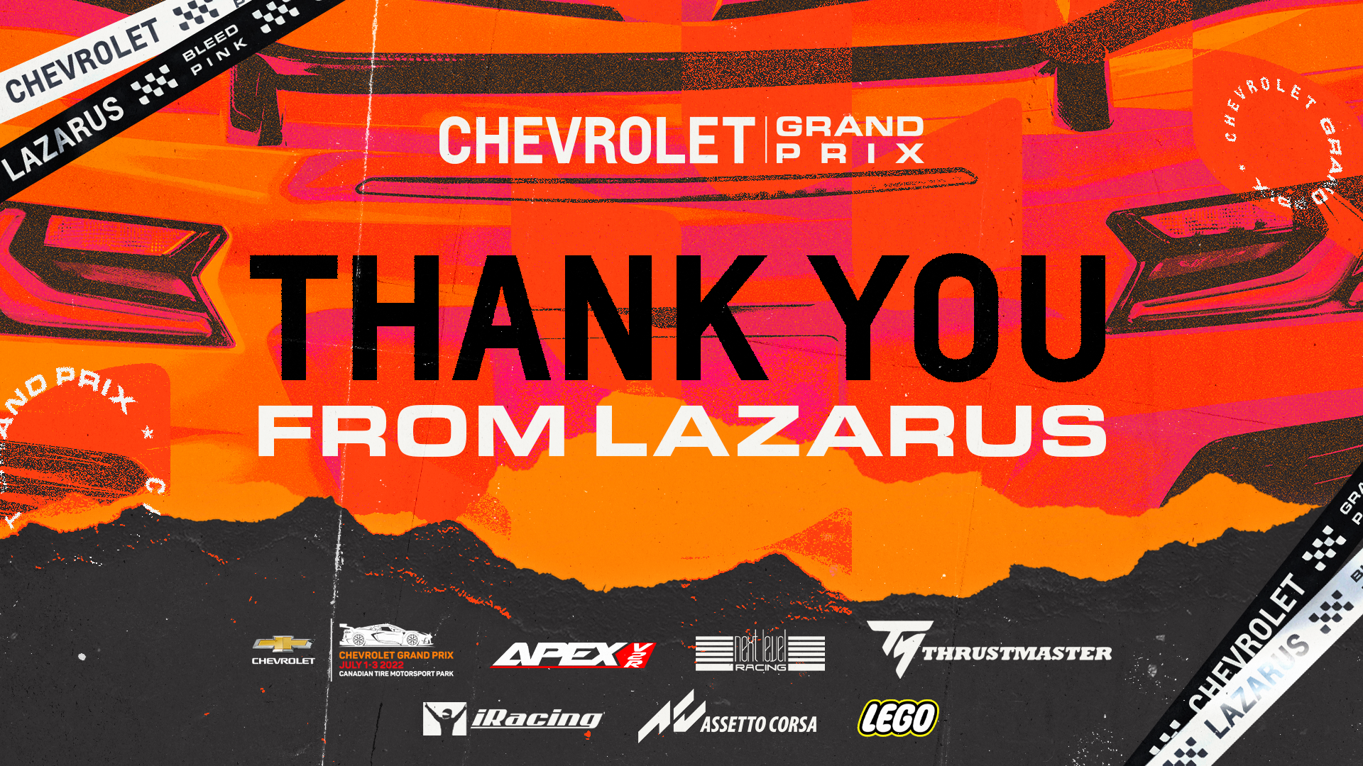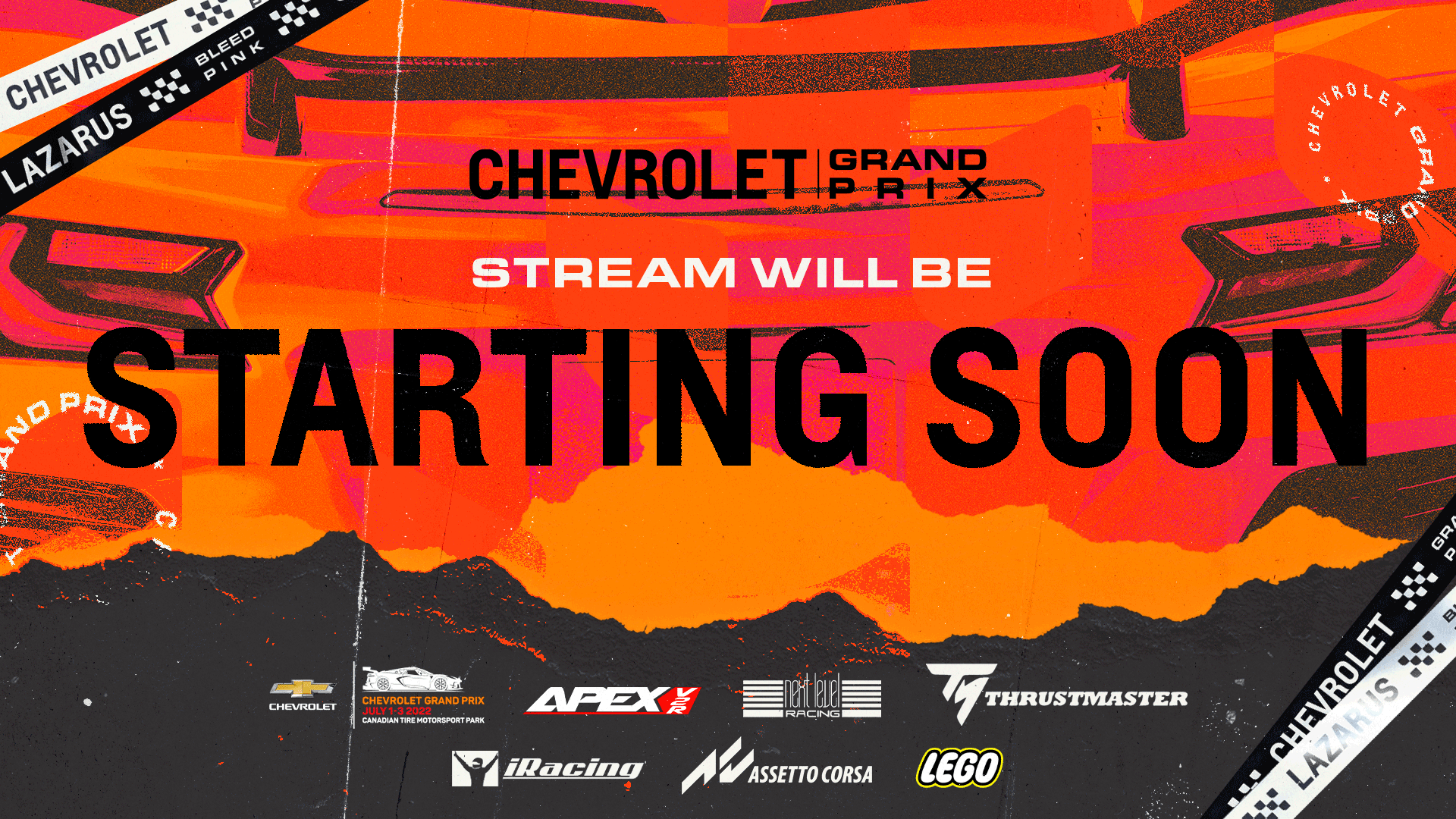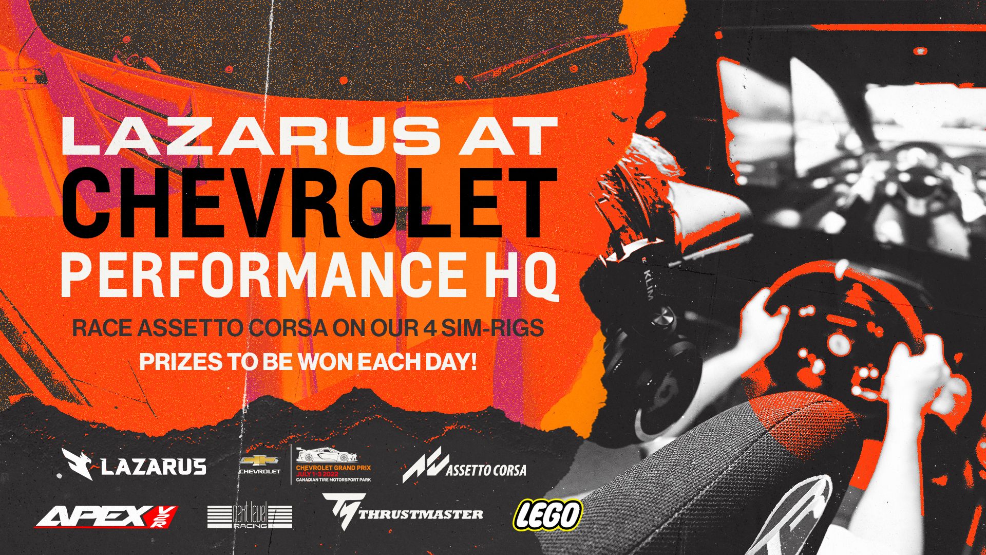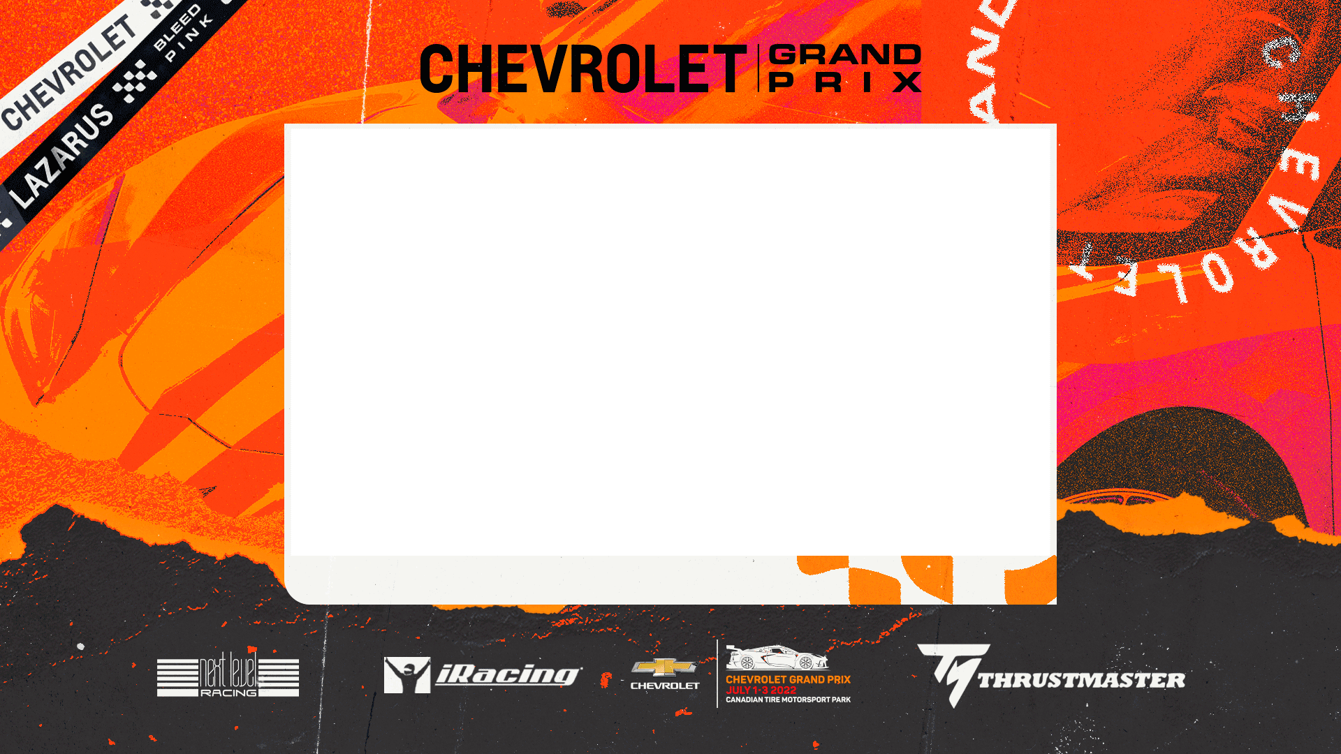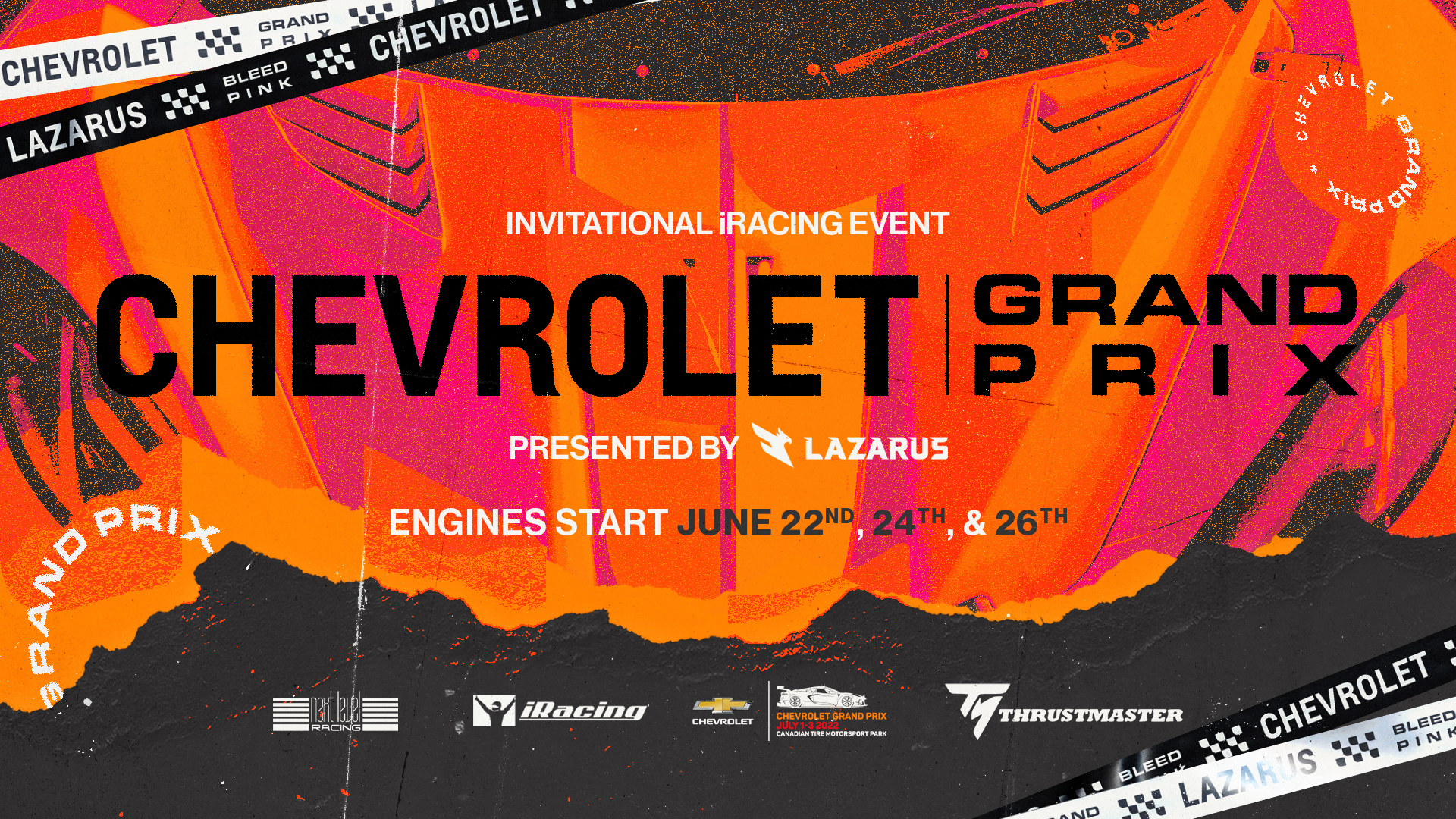 The Chevrolet Grand Prix is an Simulated iRacing livestream broadcast event with an in-person activation in partnership with Chevrolet, hosted by Lazarus Esports. This project encompasses the brand direction for the event,
