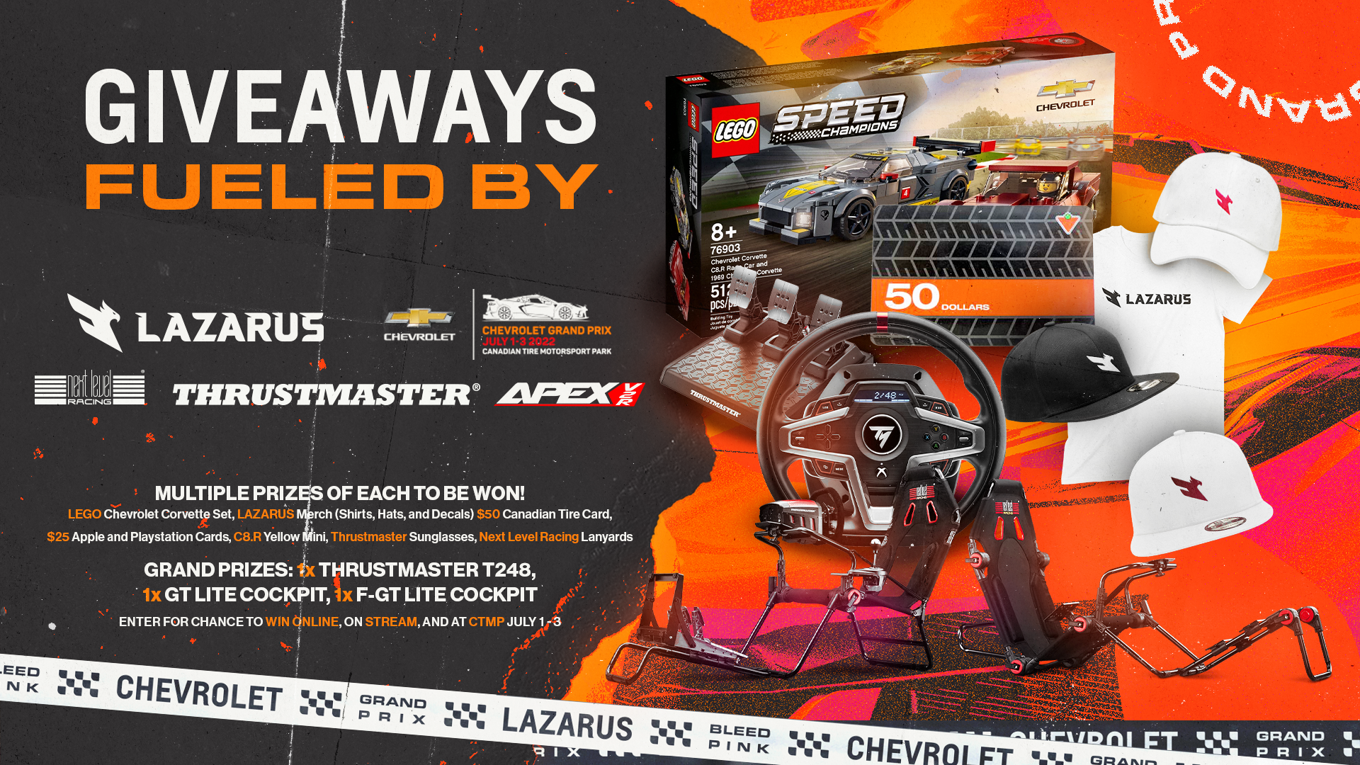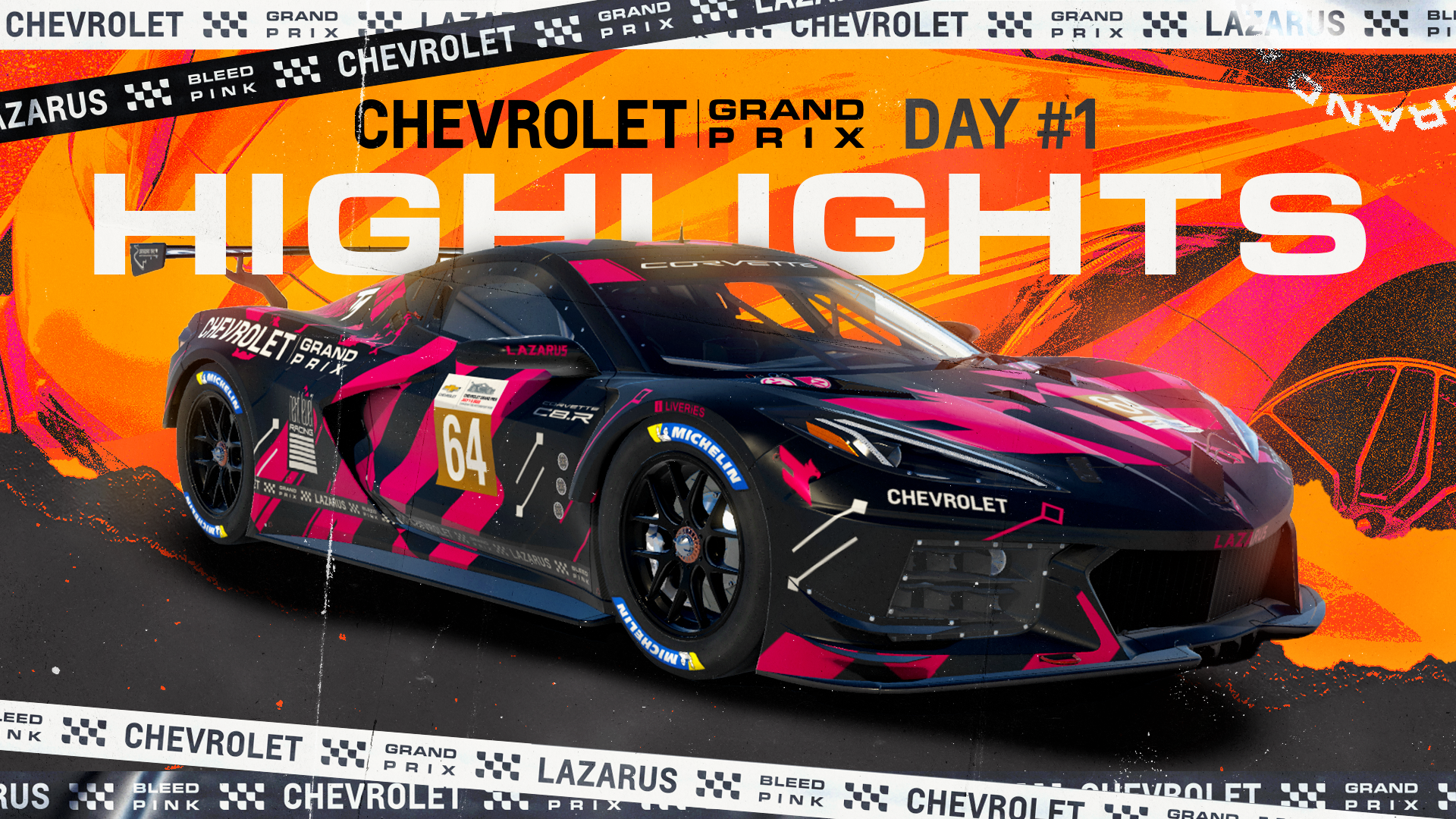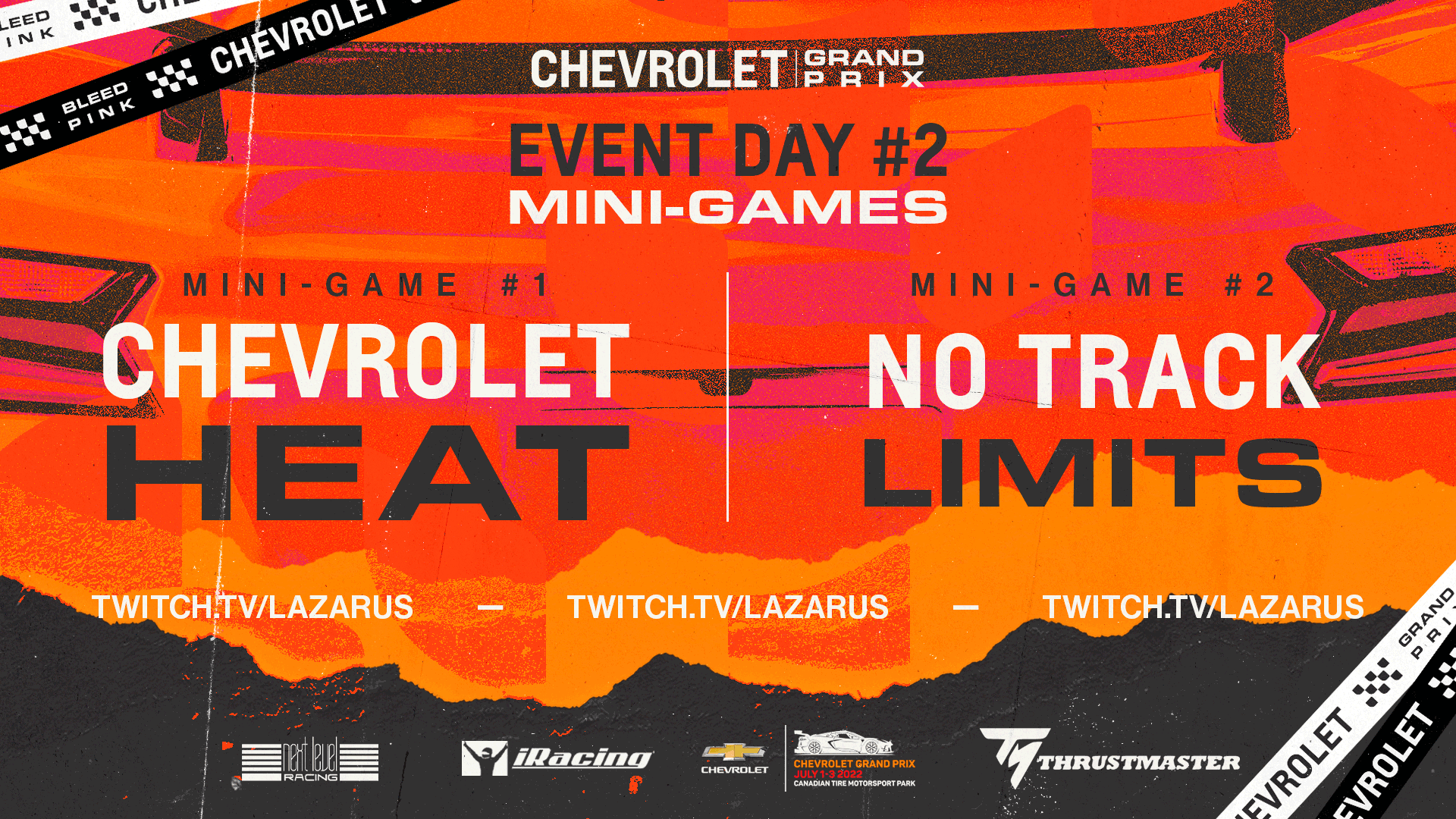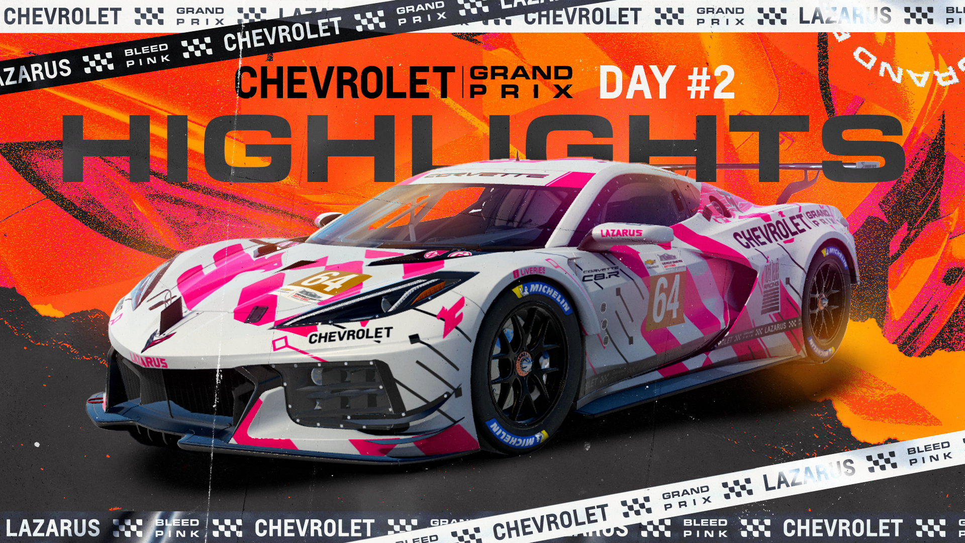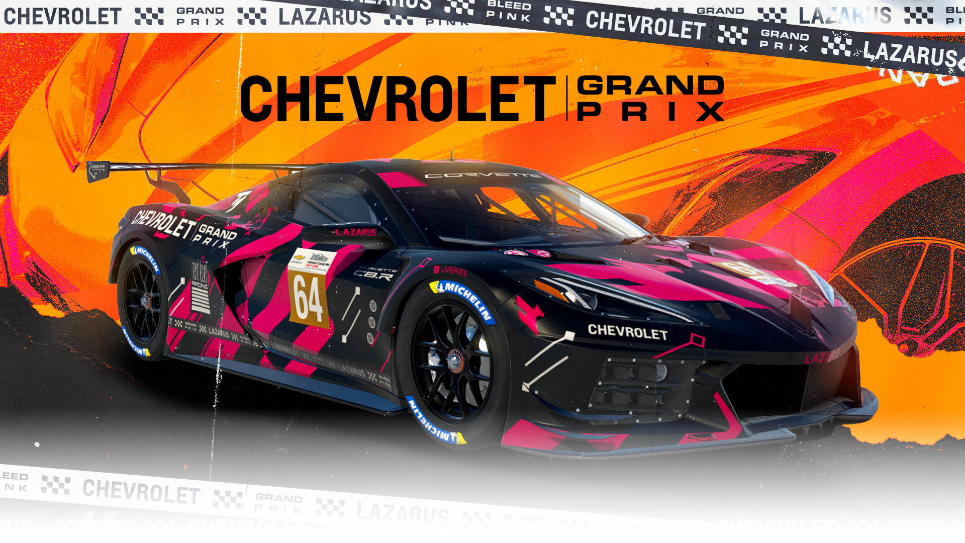 The Chevrolet Grand Prix is an Simulated iRacing livestream broadcast event with an in-person activation in partnership with Chevrolet, hosted by Lazarus Esports. This project encompasses the brand direction for the event,