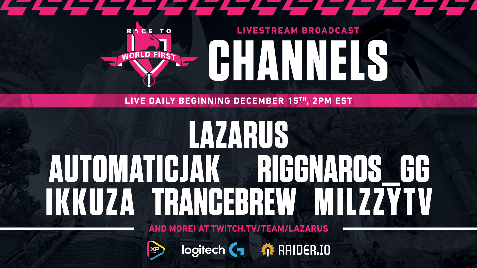 The Race to World First is a recurring boss raid event for World of Warcraft, with broadcasts across multiple teams, general coverage by OTK Network and Lazarus Esports' Imperative guild participated. This project encompasses the event direction, as well as showcasing social media and livestream broadcast assets designed for the event.
